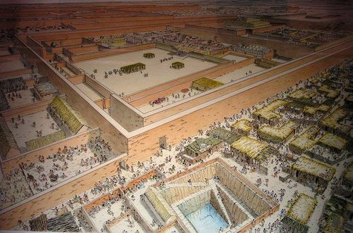Die Stadt bestand aus zehntausenden Gebäuden, die von bis zu neun Meter hohen Mauern umgeben waren. Jedes Bauwerk wurde aus sonnengetrockneten Lehmziegeln errichtet, und besonders die Wände der Paläste und Tempel wurden mit aufwendigen Fresken verziert, die sich über viele Dutzend Meter erstrecken können.