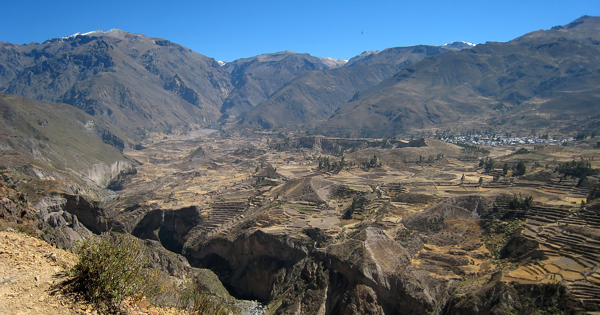Im Süden Perus, nahe des Örtchens Chivay liegt der Cañón del Colca, die immerhin zweittiefste Schlucht Perus und fast doppelt so tief wie der amerikanische Grand Canyon. Hier hat sich der Colca Fluss über Millionen Jahre hinweg seinen Weg tief durch das Gebirge gebahnt und eine atemberaubende Landschaft geformt.
