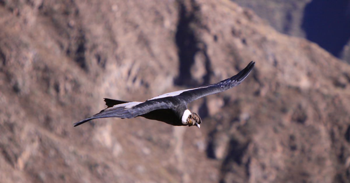 Der Colca Canyon ist Heimat für die majestätischen Anden-Kondore. Diese gefährdete Vogelart wird bis zu 40 Jahre alt und ihre Männchen können eine Flügelspannweite von bis über 3 Meter erreichen. Die männlichen Vertreter verfügen über schwarzes Gefieder mit weißen und silbernen Deckfedern auf der Oberseite und einem weißen Kragen. Die Damen sind zierlicher und nur schwarz, während Jungvögel – die bis sie zwei Jahre alt sind mit ihren Eltern leben und von ihnen alle Tricks über das Fliegen lernen – sind bräunlich.