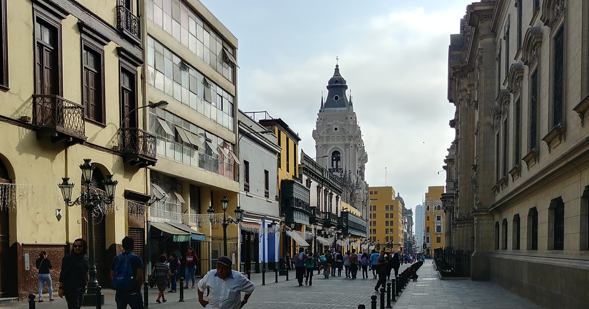 An der Plaza Mayor Platz ist auch gut zu sehen, wie sich aufgrund der vielen Erdbeben in Lima das Gesicht der Altstadt mit der Zeit veränderte: Die Wiederaufbauarbeiten wurden oft im Stil der jeweiligen Zeit durchgeführt, was zu der bunten Stilmischung aus Renaissance, spanischem Barock und Neoklassizismus führte.