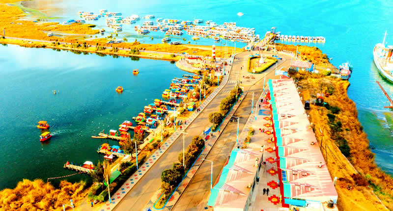 Zur linken Seite erstreckt sich ein ökotouristischer Malecón, eine Uferpromenade, die den Hafen mit der Universidad Nacional del Altiplano verbindet. Dieser Abschnitt gehört zur Pufferzone der Reserva Nacional del Titicaca und bietet Raum für: