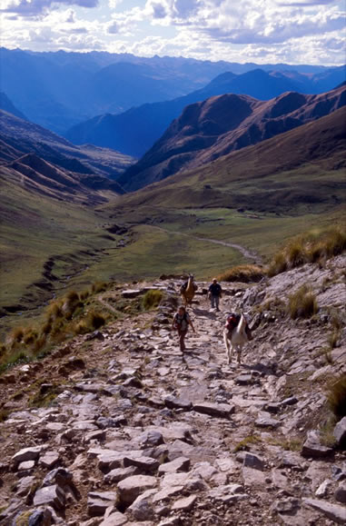 Die Szenerie ist oft atemberaubend. Mal schlängelt sich ein Weg an einer Bergflanke entlang, auf der anderen Seite fällt das Gelände steil nach unten ab. An anderen Stellen wiederum wird der Blick auf ein fruchtbares Tal frei oder führt der Weg in Stufen zum Meer hinunter. Für Besucher Perus ist vor allem der sogenannte Inka-Pfad interessant, ein kleiner Teil von Qhapaq Ñan.