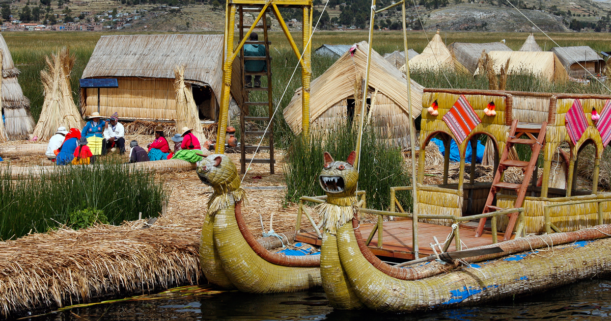 Bei einer Rundfahrt zu einigen der schwimmenden Inseln können Sie sich von der kreativen und höchst robusten Bauweise des Untergrundes selbst überzeugen. Bereits zuvor gibt es die Möglichkeit, das Material selbst zu bewundern – denn die Boote, mit denen Sie unterwegs sind, sind ebenfalls aus dem am Rande des Titicacasee wachsenden Bau-Schilf gefertigt. Natürlich dürfen die Inseln auch betreten werden! Achtung: Auf manchen der künstlichen Inseln kann der Untergrund sehr weich und nachgiebig sein.